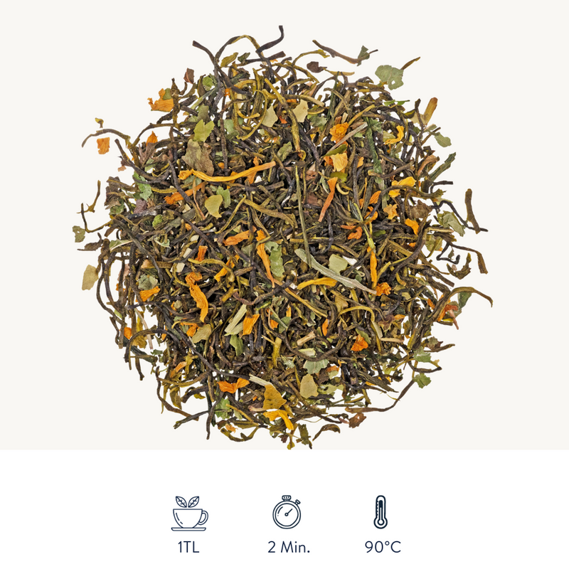 Das Ergebnis ist ein Tee, der Klarheit schenkt und zugleich angenehm mild bleibt. Ideal als Start in den Tag, als Begleiter im Büro oder als kleine Pause zwischendurch.