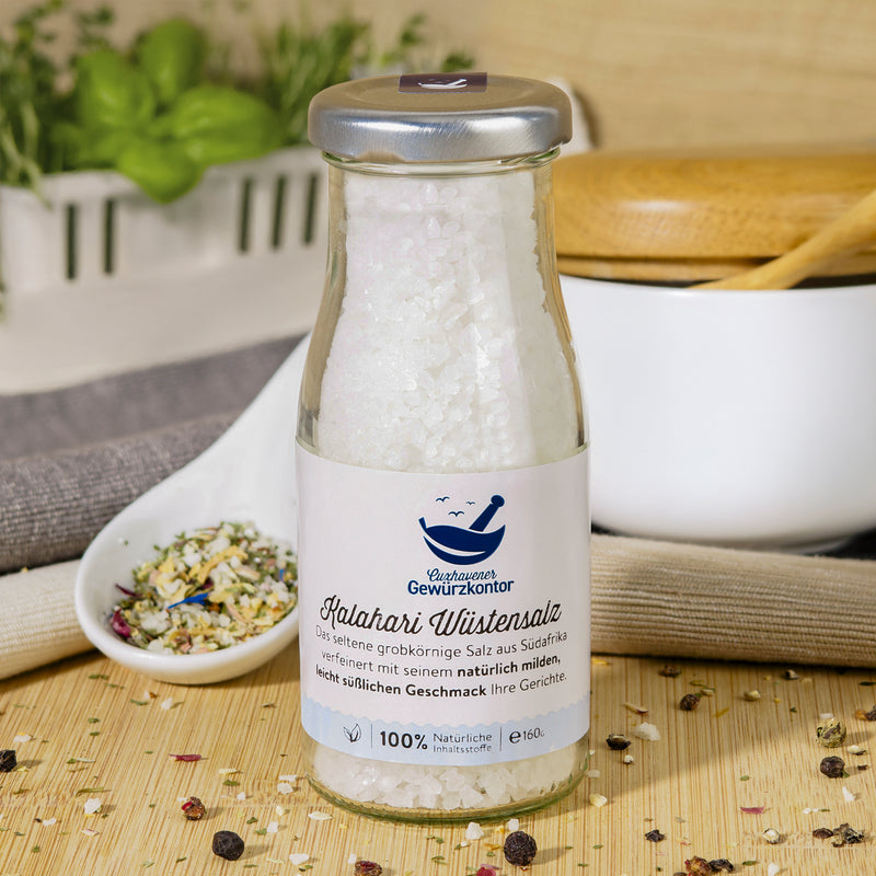 Unser Tipp: Tauche ein in die faszinierende Welt der Kalahari mit unserem Wüstensalz. Verleihe deinen Gerichten eine einzigartige, mineralische Note, die deine Geschmacksknospen verzaubern wird. Hergestellt und abgefüllt aus den besten Zutaten in unserer Manufaktur, ohne Kompromisse bei der Qualität.