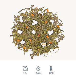 Das Ergebnis ist ein Tee, der wie ein moderner Matcha Latte schmeckt – samtig, klar und angenehm rund. Sein Duft wirkt einladend, der Geschmack mild mit einer leichten Süße. Ideal für alle, die Matcha lieben und eine neue Variante entdecken möchten. Ob am Morgen als Start in den Tag oder am Nachmittag als entspannte Auszeit – Matcha Latte passt immer.