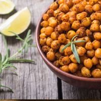 Gekochte Kichererbsen mit Öl und Paprika rösten – knuspriger Snack.