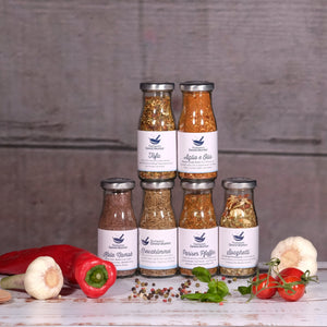 Der Spaghetti Würzer verhilft mit seinem pikanten, leicht würzigen Aromen deinen Pasta-Saucen auf die Sprünge, während das Aglio e Olio Gewürz nicht nur in der italienischen Küche Anwendung findet. Auch asiatische Gerichte werden mit dieser Würzmischung aufgepeppt. Passend dazu mischt der Kreuzkümmel arabische und indische Gerichte gleichermaßen auf.