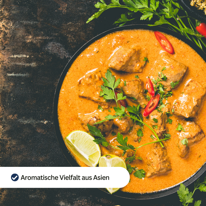 🥘 In Currys & Eintöpfen – würzig & exotisch 🍗 Als Marinade für Fleisch & Geflügel – aromatisch & intensiv 🥦 In Wok-Gemüse & vegetarischen Gerichten – frisch & vielseitig 🥣 In Dips & Chutneys – raffiniert & unkompliziert