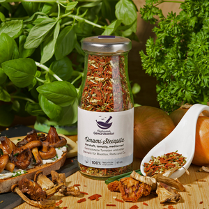 Umami, die fünfte Geschmacksrichtung, steht für einen vollmundigen und herzhaften Geschmack. Unser Umami Steinpilz Gewürz nutzt die besten natürlichen Umami-Quellen aus der heimischen Küche: sonnengereifte, getrocknete Tomaten und edle Steinpilze. Die Tomaten bilden eine kräftige, fruchtige Basis, während die feine Pilznote das Aroma perfekt abrundet. Abgestimmte mediterrane Kräuter wie Oregano und Basilikum verleihen der Mischung ihren authentischen Charakter. So gibst du deinen Gerichten einen komplexen und harmonischen Geschmack.